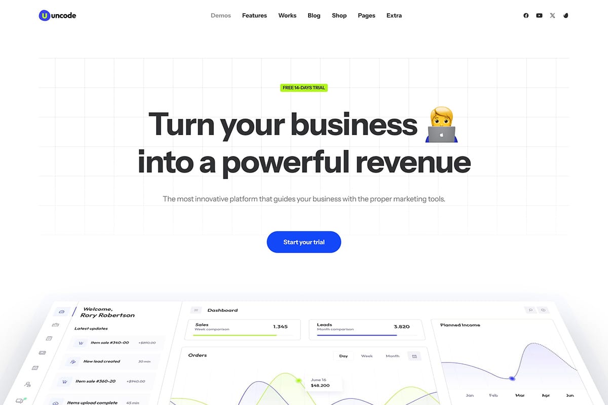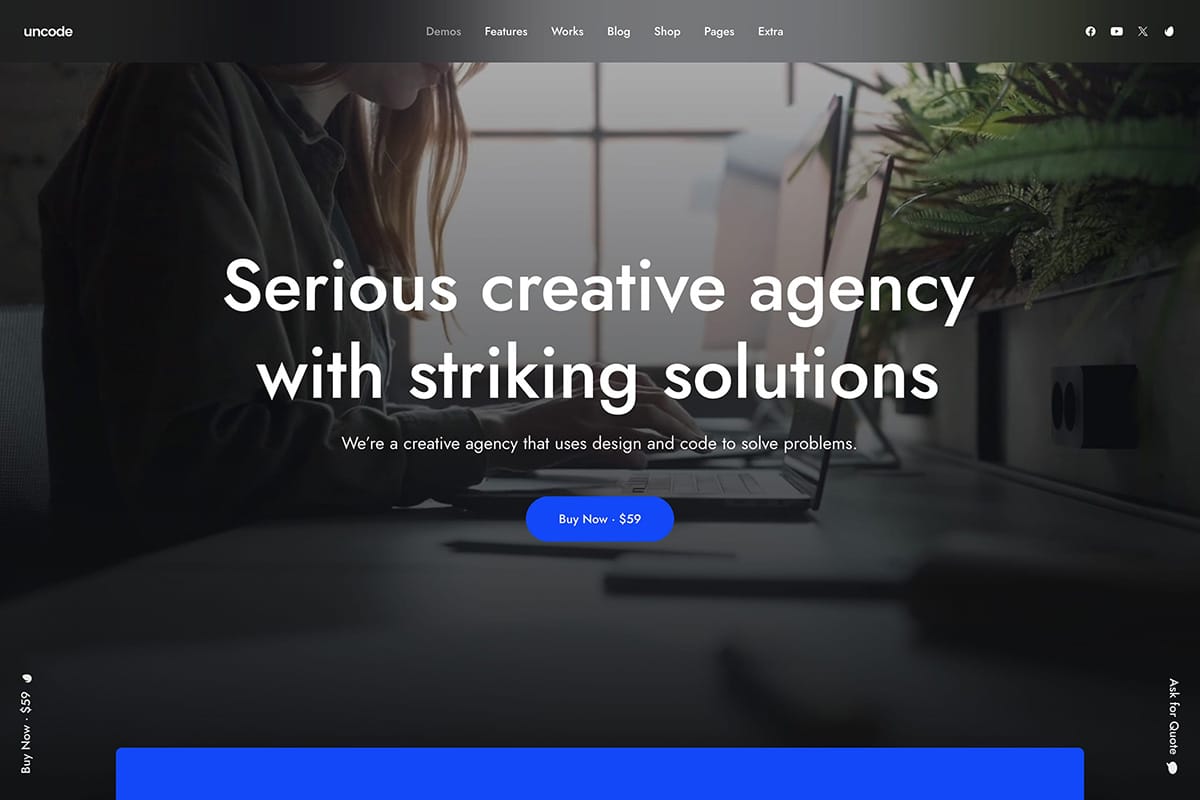 Uncode is a popular creative WordPress theme designed for flexibility, and performance.